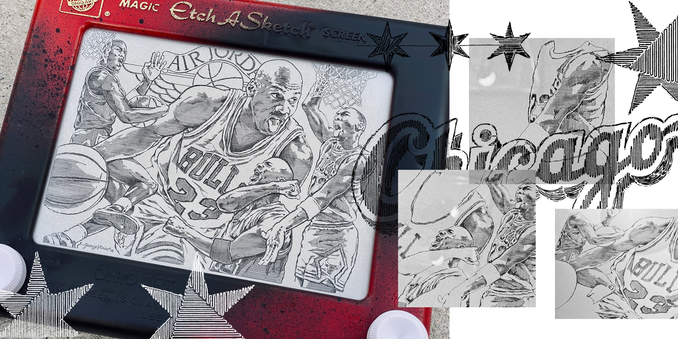 Along with their traditional artwork and apparel, what really sets GV Art + Design apart is something no one else in the world can offer; original one-of-a-kind pop art on the Etch A Sketch that has captured the attention of the world. George III first picked up the Etch A Sketch when he was 10 years old and has perfected it through the years. See what makes George the world's best!