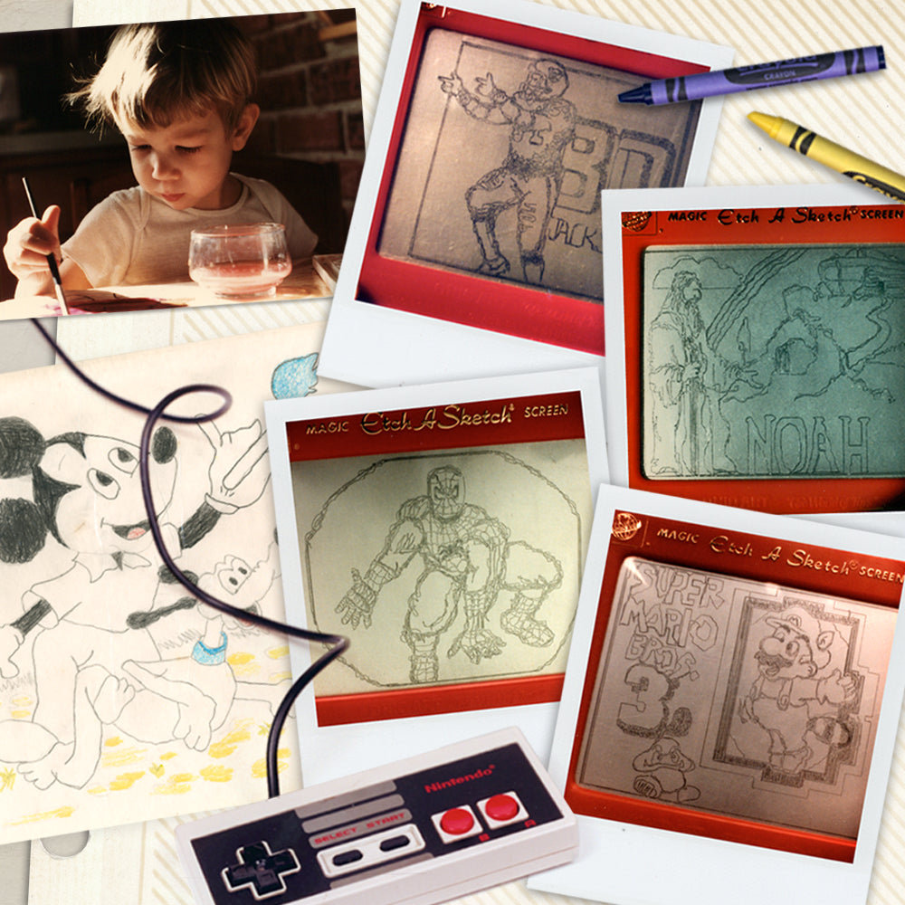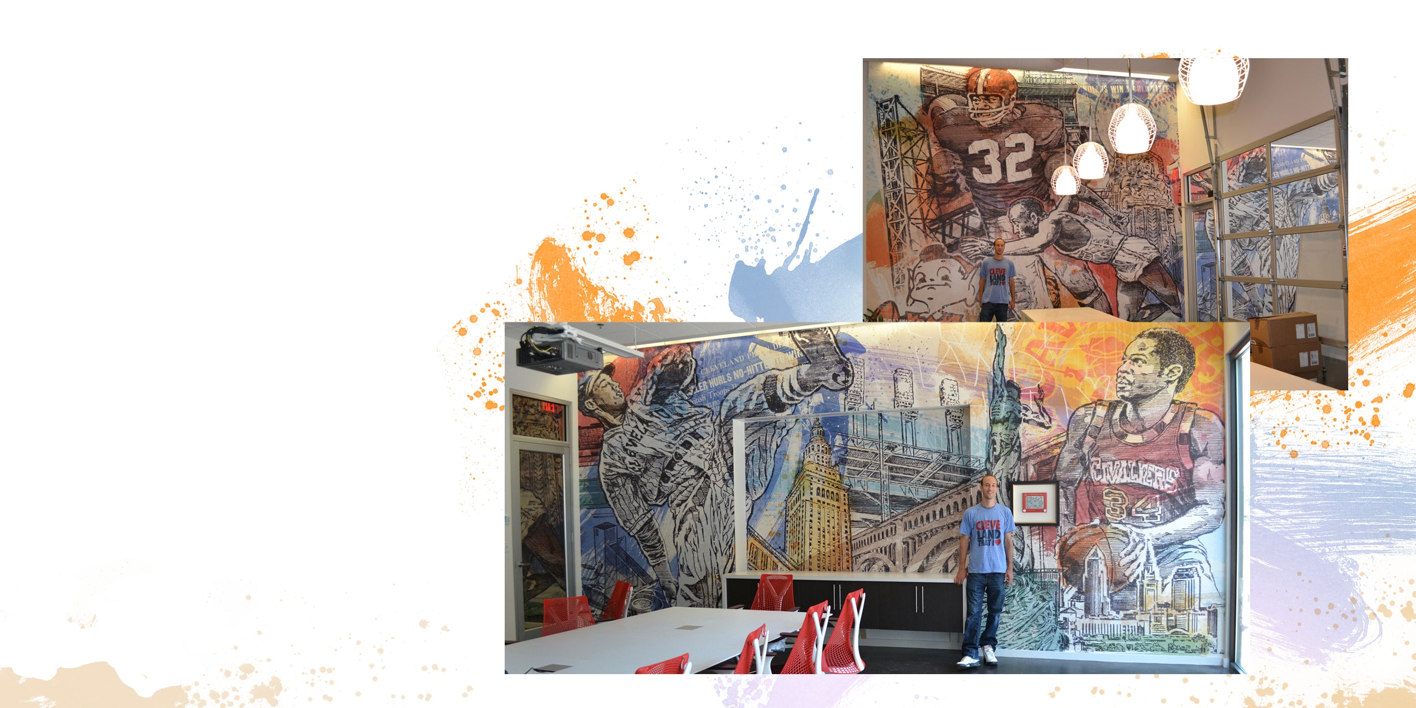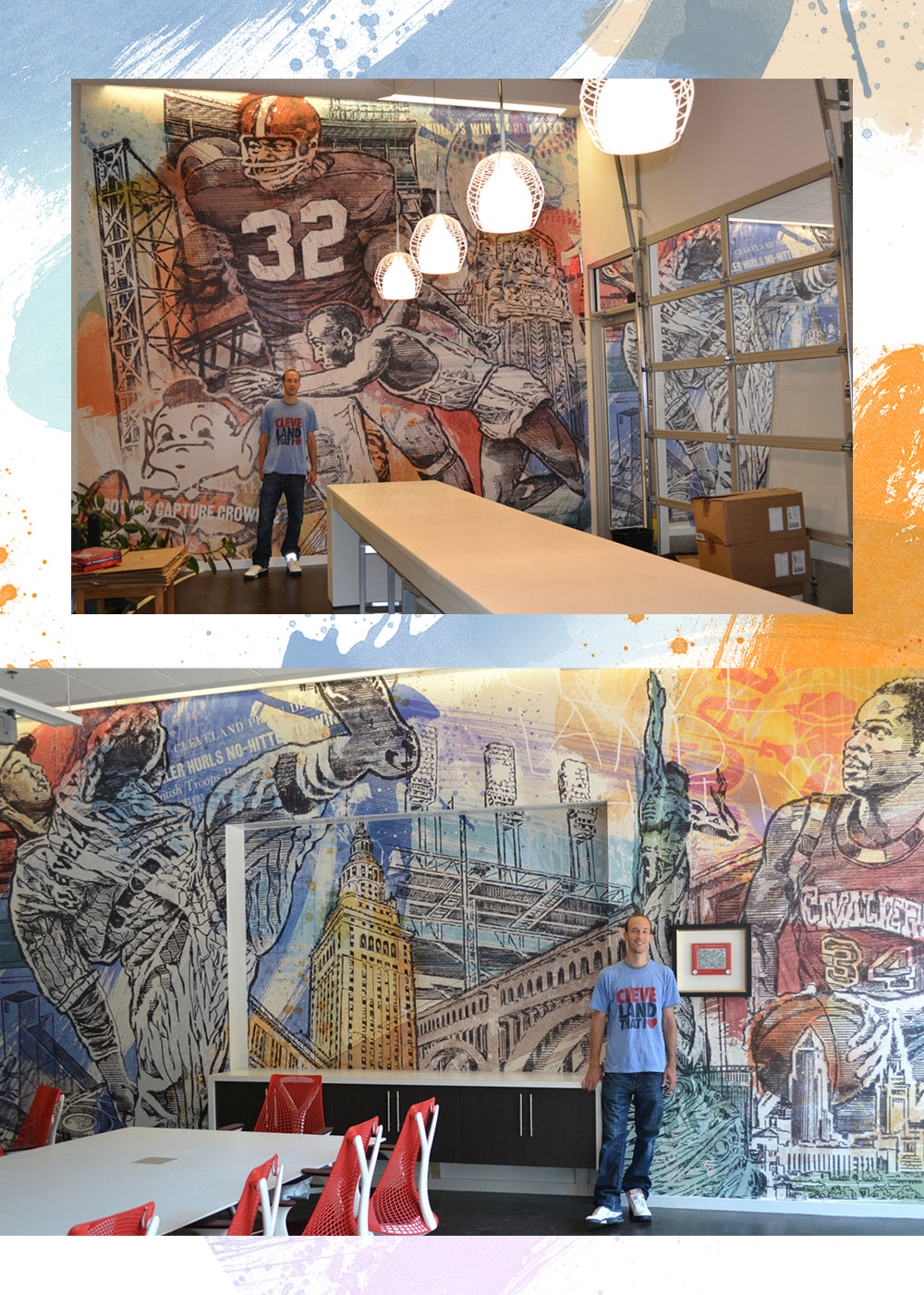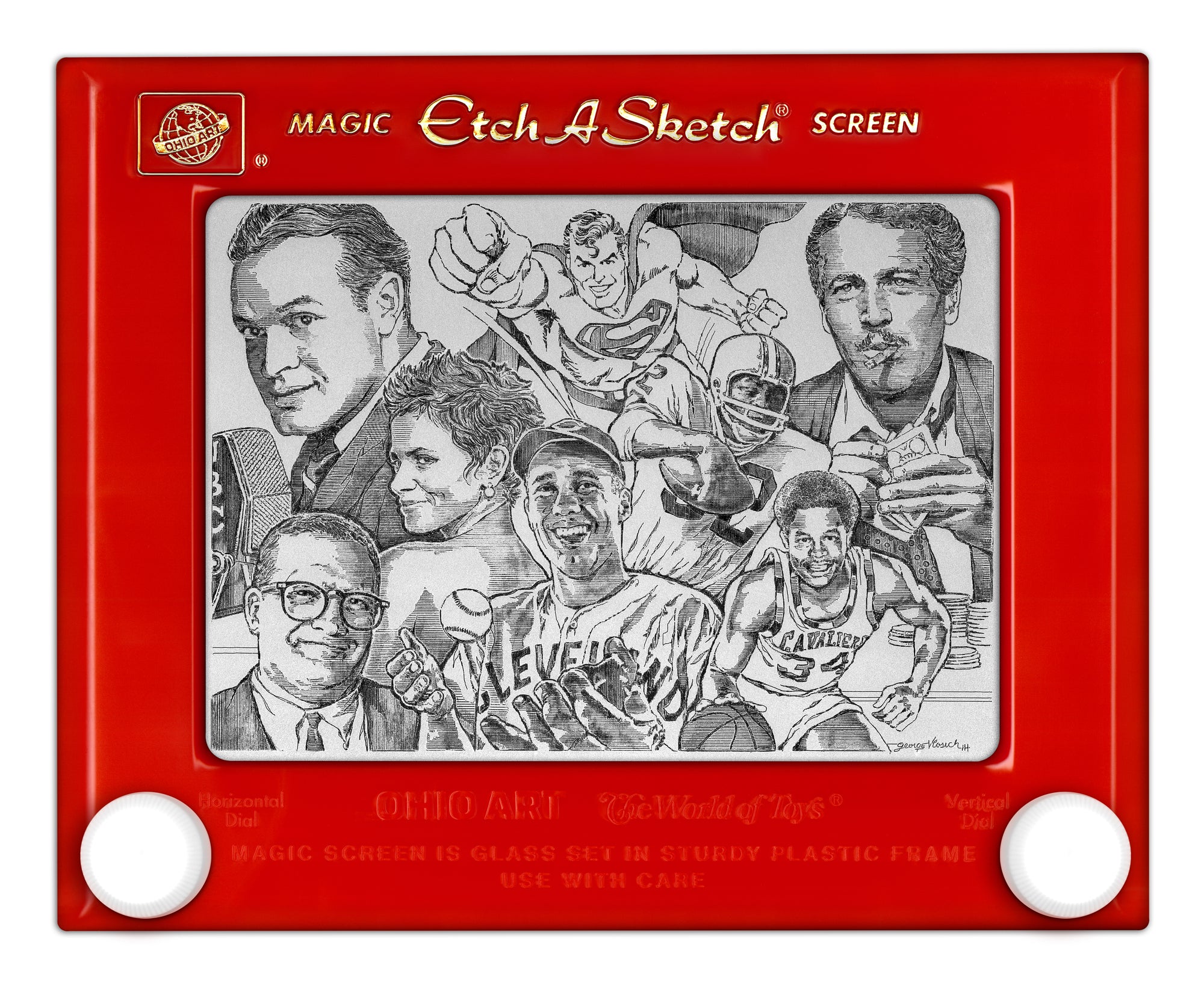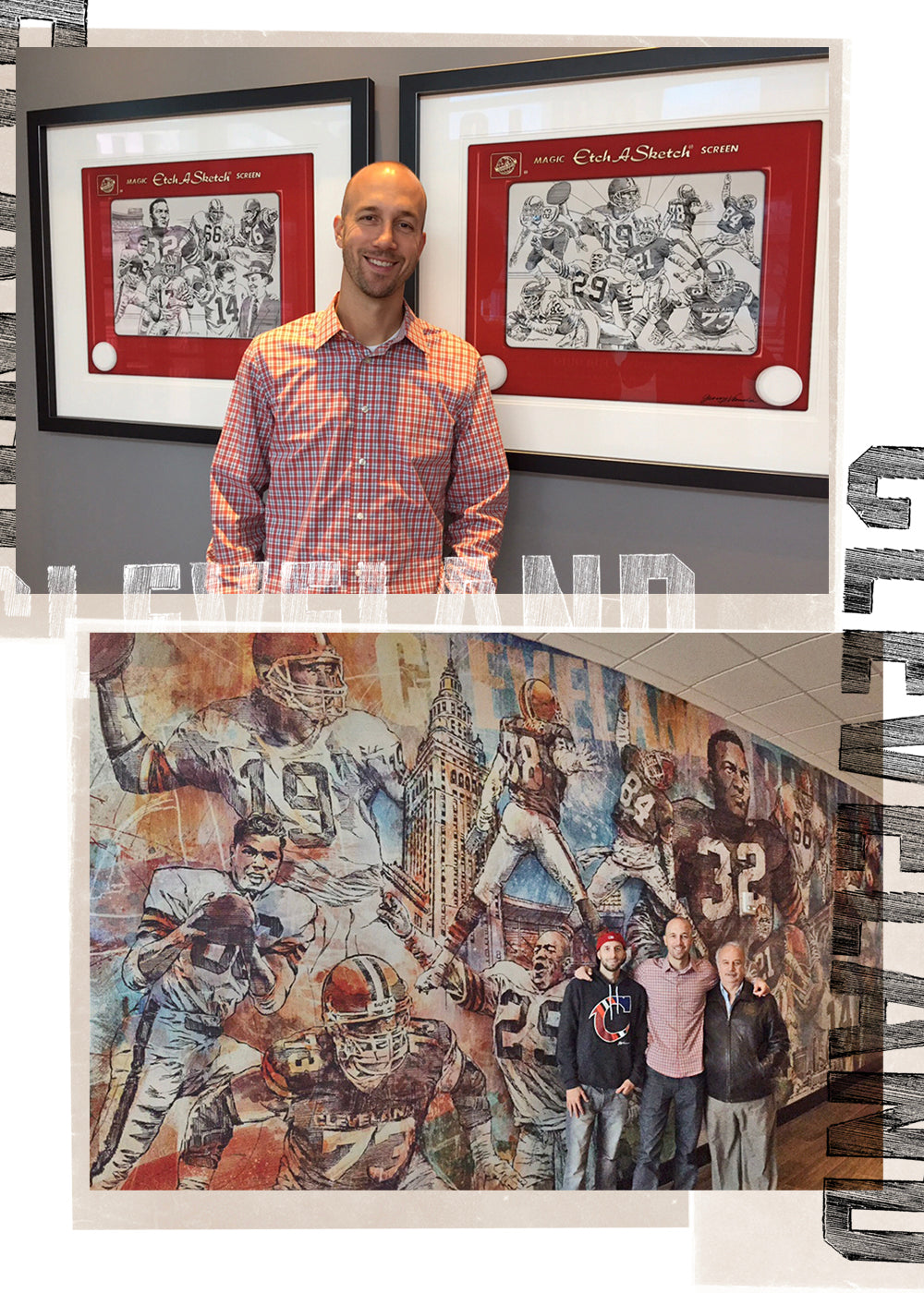 George was commissioned to create two original Etch A Sketches and a 40-foot mural of 15 of the top players in Cleveland Browns history for their new renovations at First Energy Stadium. Using the Etch allows George to design unique pieces that have mass appeal and create artwork and apparel that no one else in the world can create. It is truly one-of-a-kind.