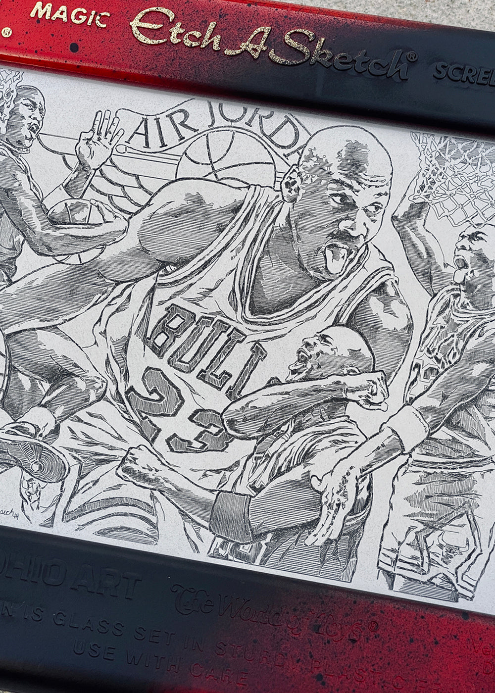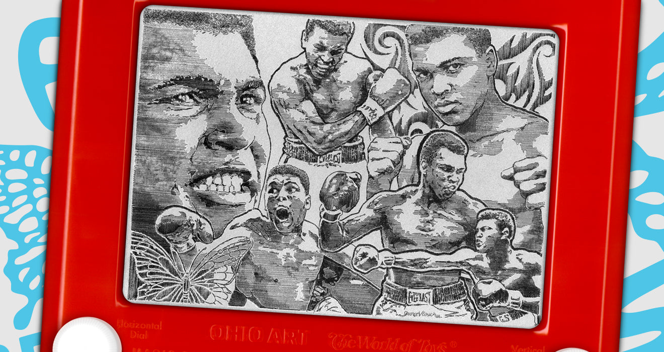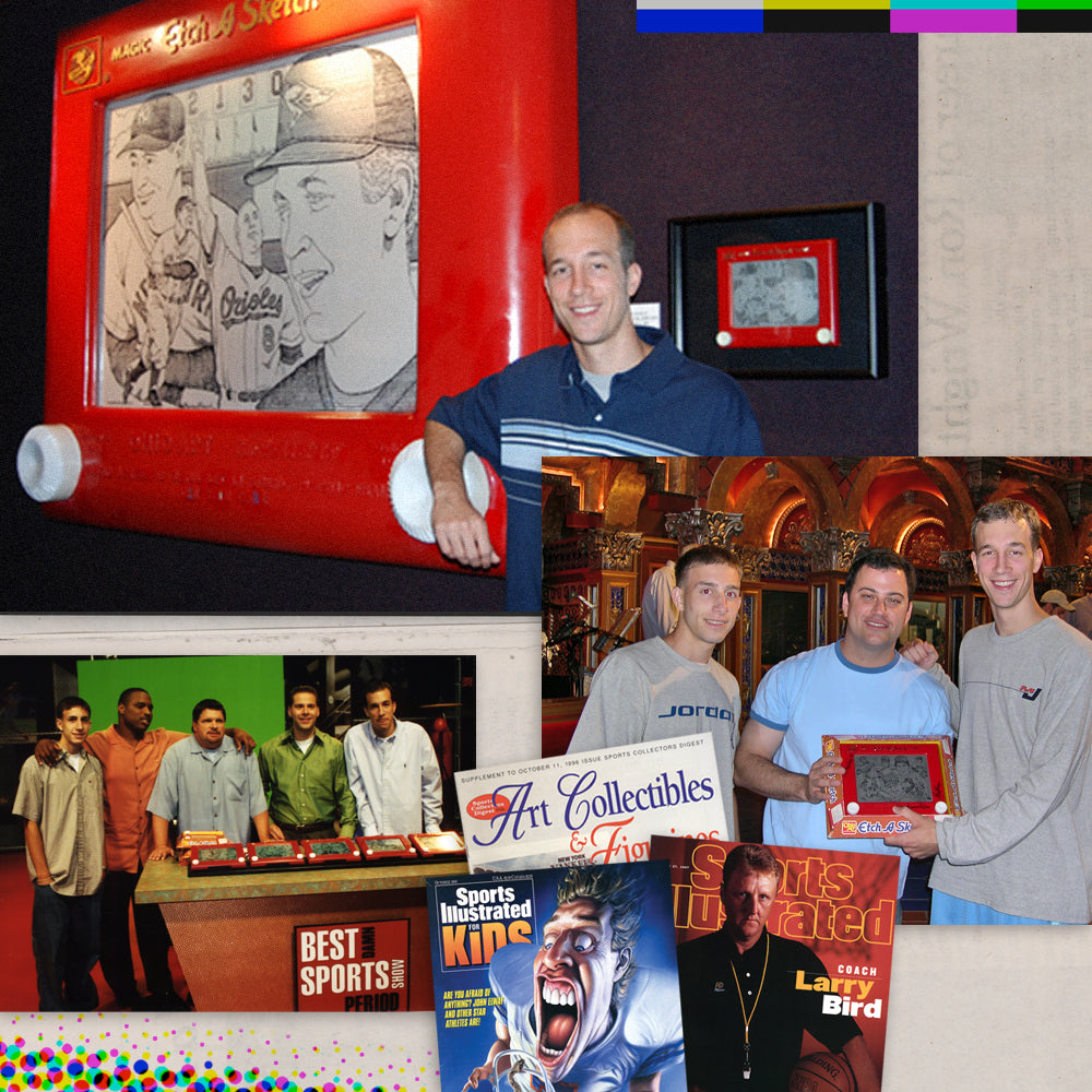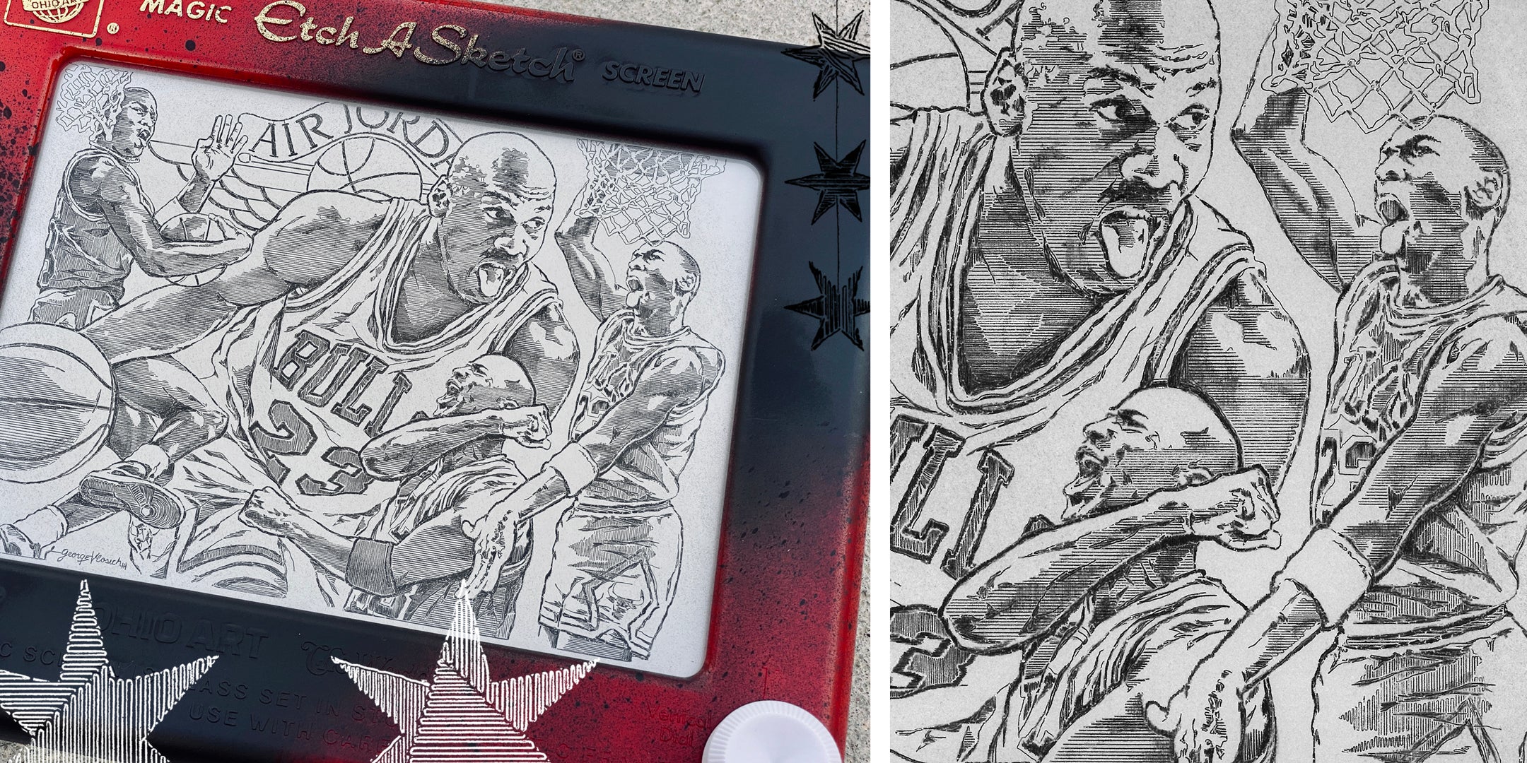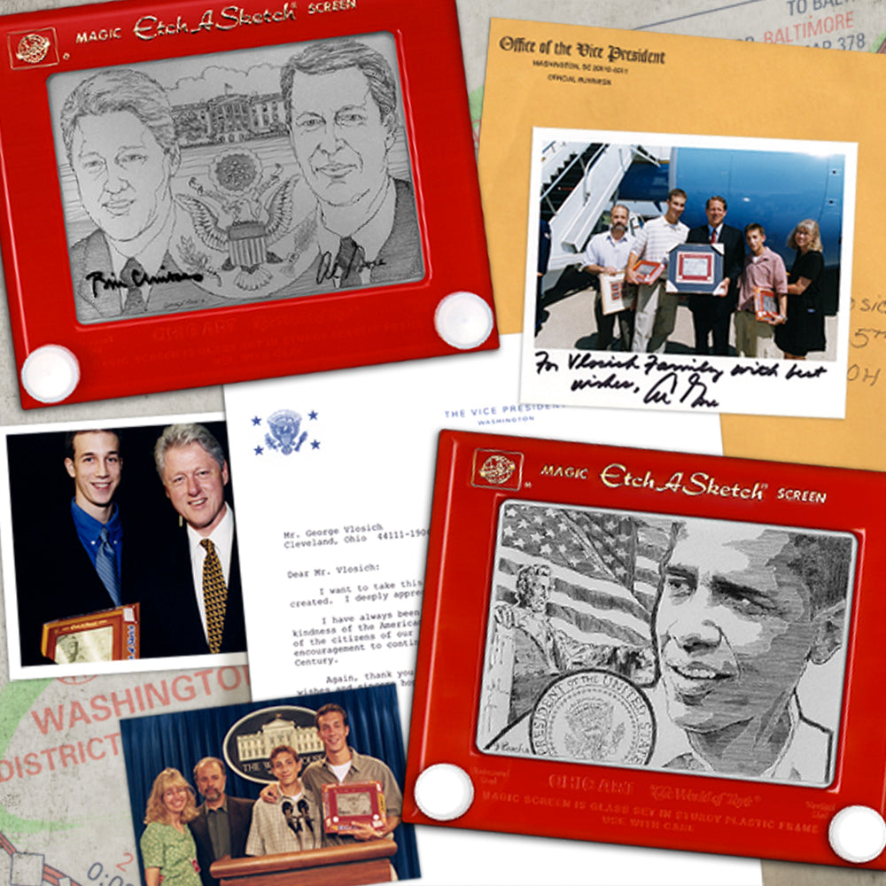 George Vlosich III is known as the world’s best Etch A Sketch artist. Over the years, he has etched many of the world’s greatest athletes and celebrities including Muhammad Ali, Michael Jordan, The Beatles, The Royal Wedding, Michael Jackson, and Will Smith, as well as receiving an invitation to the White House to meet and have his artwork signed by former President Bill Clinton and Vice President Al Gore.