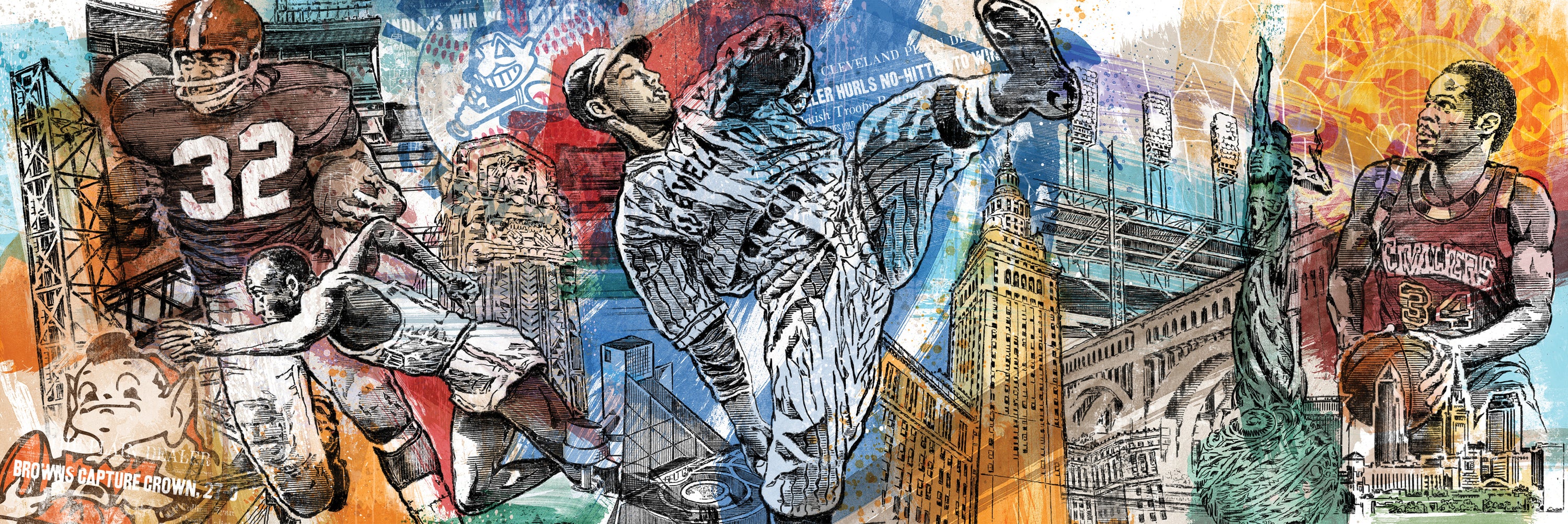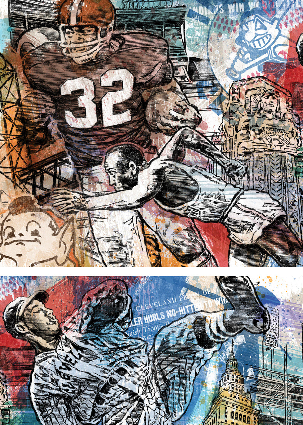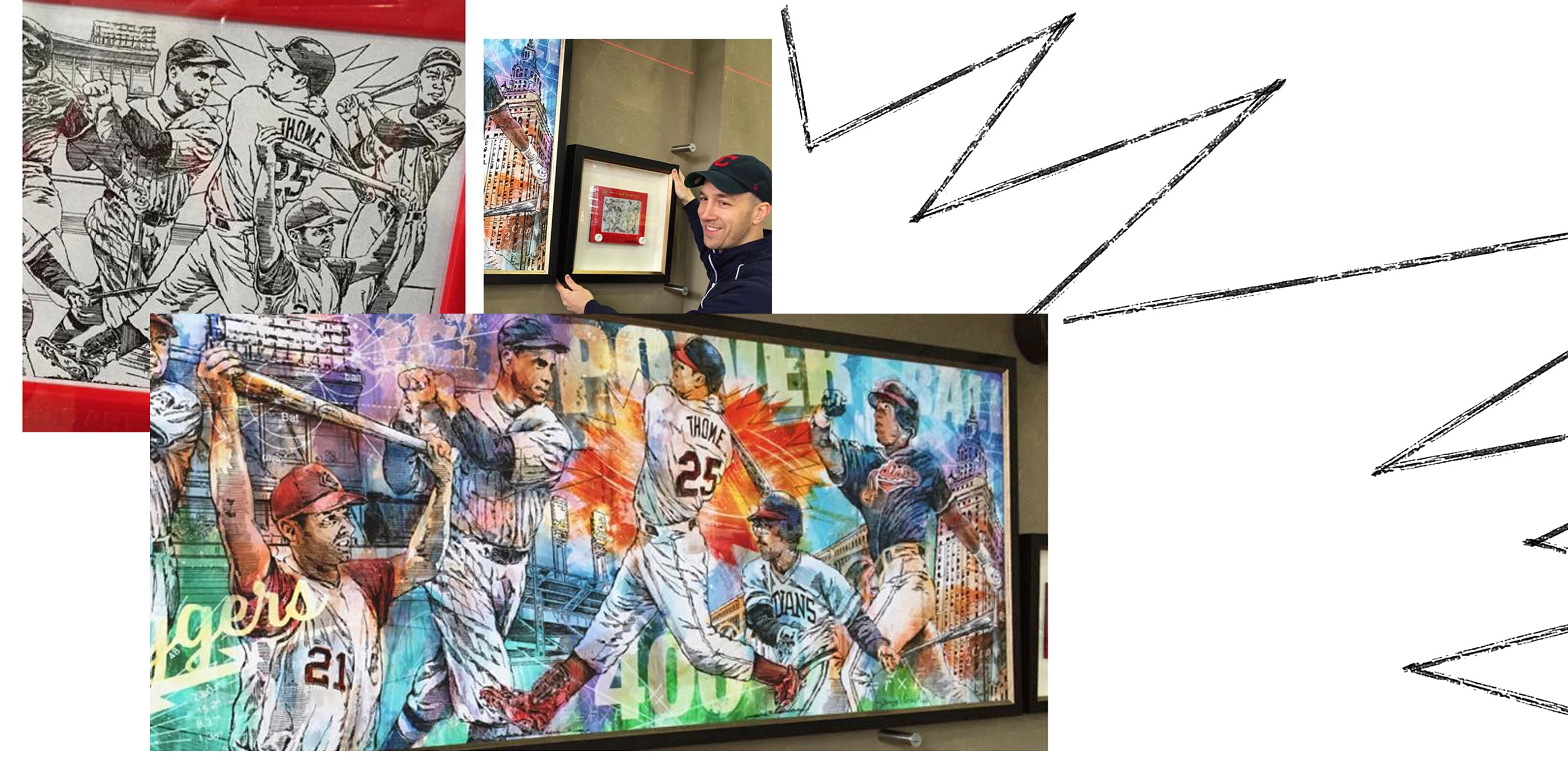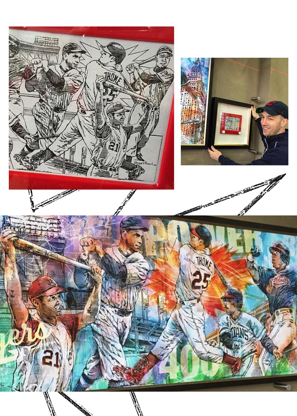 George was commissioned to create a large painting and Etch A Sketch of the Cleveland Indians’ sluggers for Progressive Field in Cleveland.