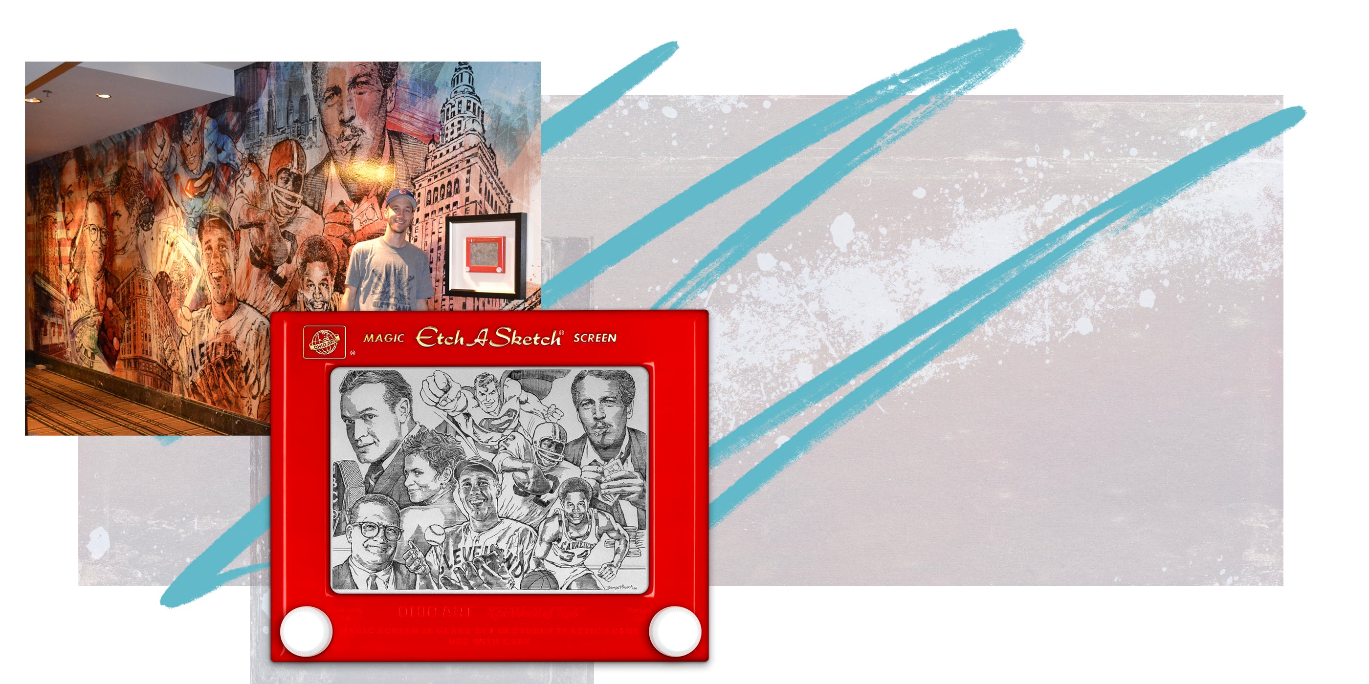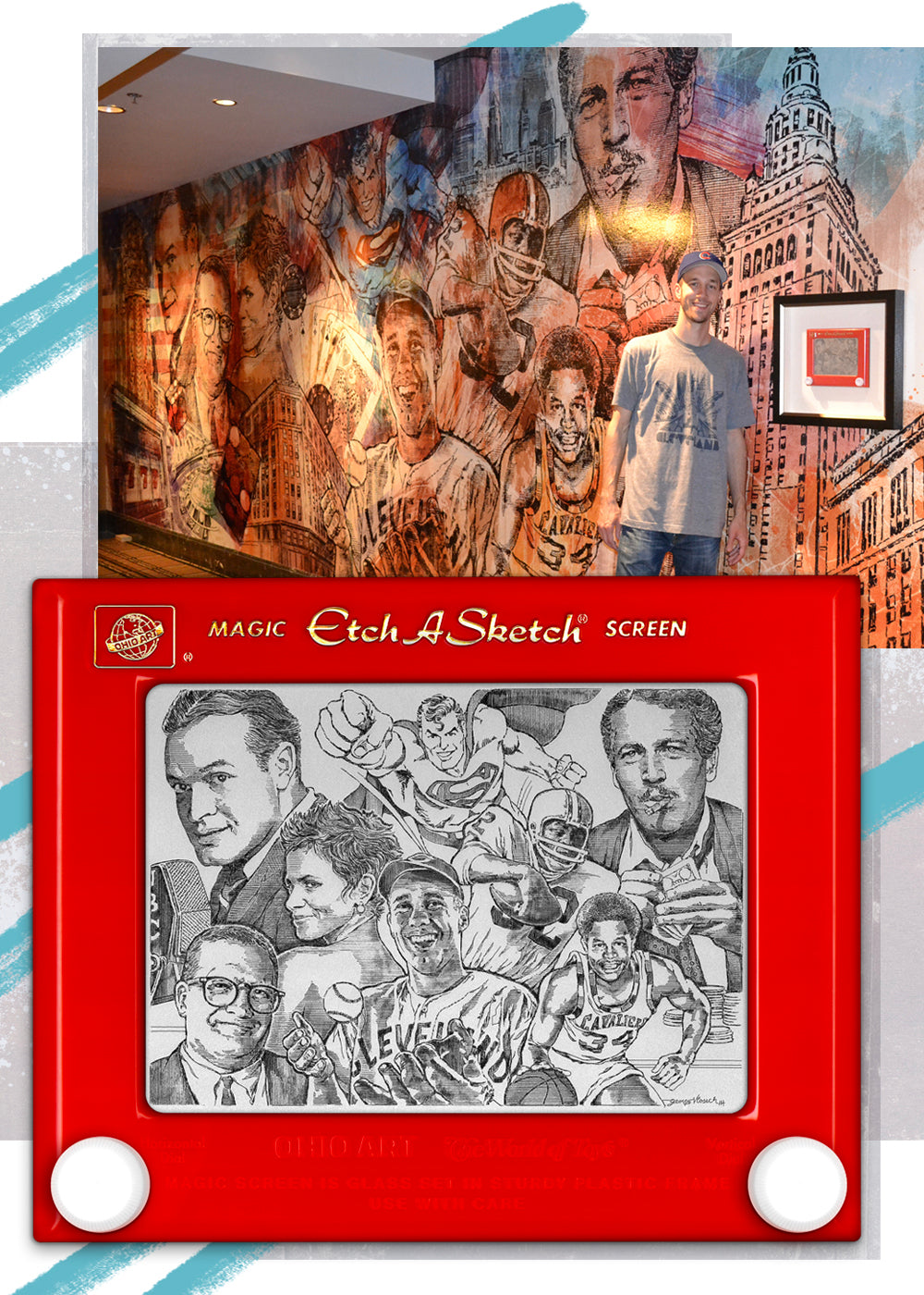 George was commissioned to create an Etch A Sketch for the now JACK Casino in downtown Cleveland. His Etch pays tribute to Cleveland legends like Bob Hope, Paul Newman, Drew Carey, and Superman. The mural is 30 feet wide and prominently displays the original Etch A Sketch framed in shadow box.