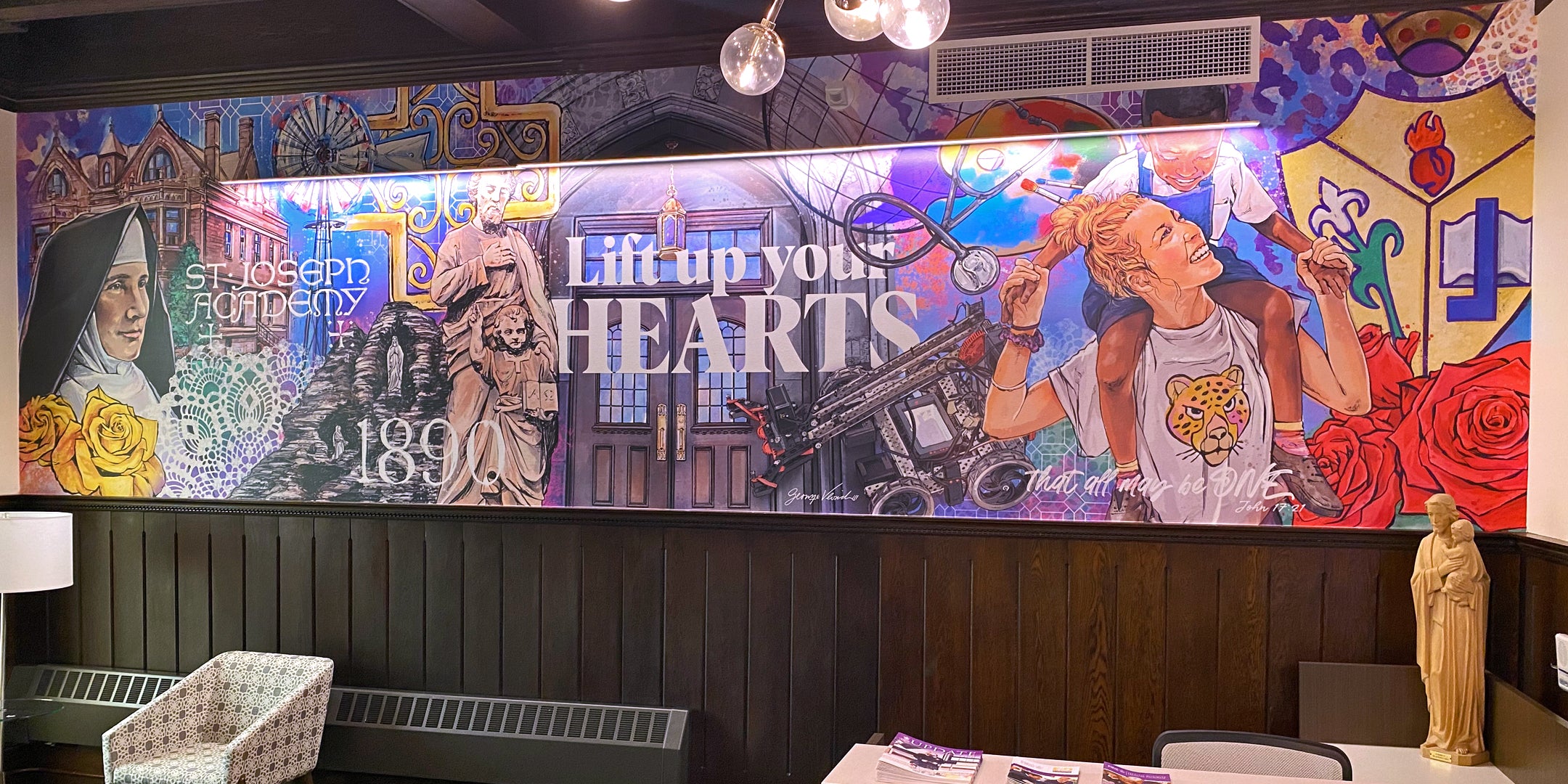 George was asked to create a mural for St. Joseph Academy in Cleveland to highlight the school's history in their newly remodeled Fitzmaurice Hall.